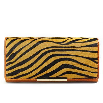 Ladies Orange Fashion Zebra-stripe Printing Horse Hair Splice Genuine Leather Clutch Wallet
