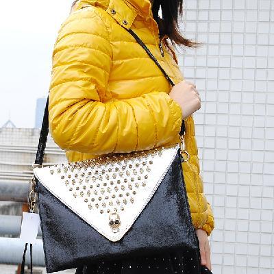 Honorable fashion silver black classic gold skull head rivet envelope bag late outfit bag accomplishment women's shoulder bag black