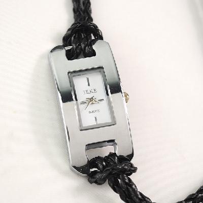 12 multi- colored hand-woven leather cord | Wild fashion bracelet watch | Black