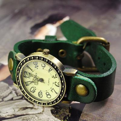 Vintage New | cowhide watches | neutral big numbers | Korean men and women really belt quartz watch | Green