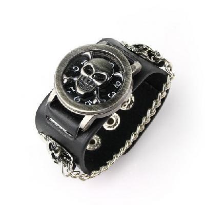 Punk Gothic Ladies Women Men Gens Genuine Leather Wrist Watch
