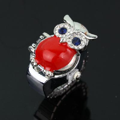Lady's Stainless Steel Silver Ring Watch with Diamond Owl Cover