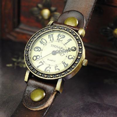 Vintage Men Womens Genuine Leather Band Cuff Hemp Bracelet Bangle Wrist Watch