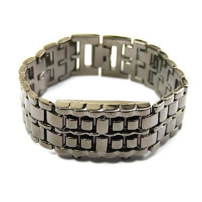 In the beginning when there is no work, this table looks like a metal bracelet, the middle is slightly larger factions, square piece of metal embedded in the middle of three rows of smaller chains. It appears that all of the mystery in that two rows of large metal block: When the LED is lit, dark red light through the 'bracelet' is emitted, like boiling lava emitting from the cracks in the rock, it is thick but more agile. Amazingly, each number just fit the gaps between the metal block ..