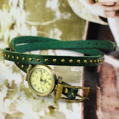 Vintage Bead Studded Ladies Watch Leather Strap Quarz Watch Elegant Bracelet