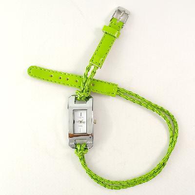 12 multi- colored hand-woven leather cord | Wild fashion bracelet watch | Green