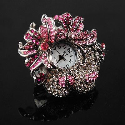 Lady's Stainless Steel Silver Ring Watch with Diamond Lily