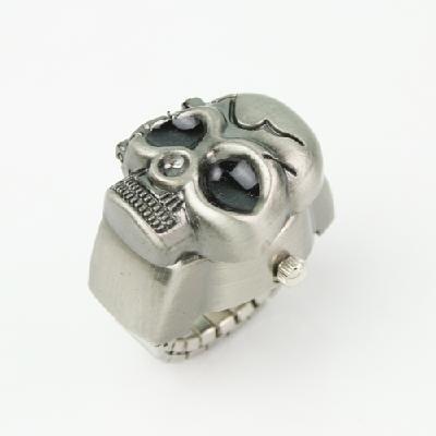 Lady's Stainless Steel Antique Silver Ring Watch with Diamond Skull Head Cover