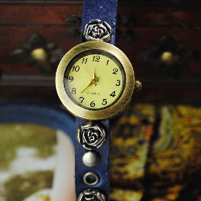 Vintage Silver Rose Studded Ladies Watch Leather Strap Quarz Watch Bracelet