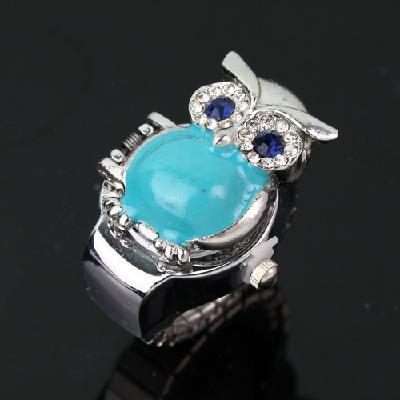 Lady's Stainless Steel Silver Ring Watch with Diamond Owl Cover