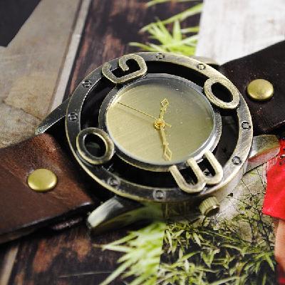 Retro new leather watch | neutral big numbers | Korean men and women really belt quartz watches | brown