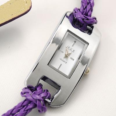12 multi- colored hand-woven leather cord | Wild fashion bracelet watch | Purple