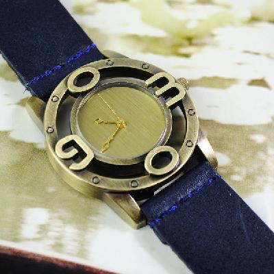 Retro new style leather watch | Neutral great digital | Korean men and women's leather strap quartz watch | Blue