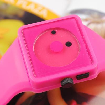 Rosy Rubber Square Two Dots Smile Creative Dial Indicators Wrist Watch