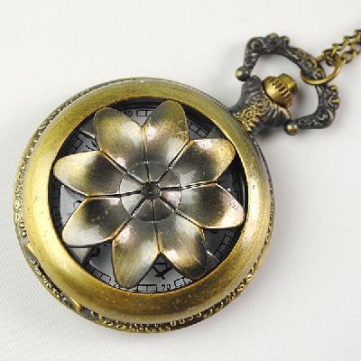 Sunflower hollow bronze electronic pocket watch