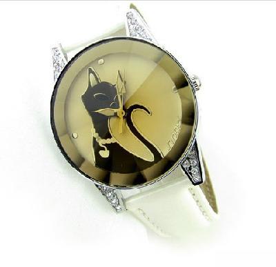 White Cat Lady's Fashion Quartz Wrist Watch with Crystal Glass Surface