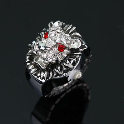 Lady's Stainless Steel Silver Ring Watch with Diamond Lion Cover