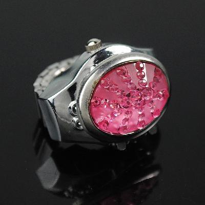 Stainless Steel Silvery Ring Watch with Oval-shaped Gemstone Cover