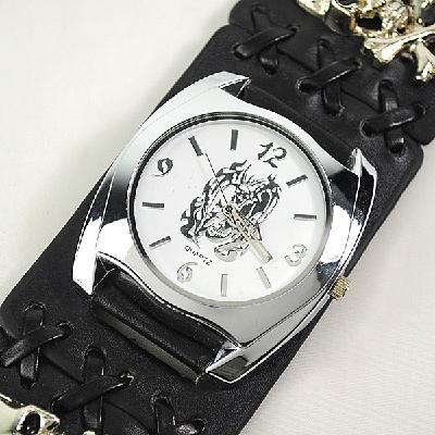 Punk Gothic Ladies Women Men Gens Genuine Leather Wrist Watch