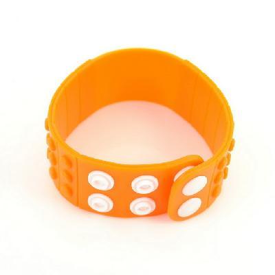 Band of wrist watches may varies by different monitor setting. The light orange band is made by silicone with 3 lines snap closures which you can adjust the size to fit your wrist.