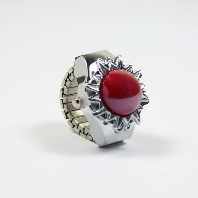 Lady's Stainless Steel Ring Watch w / Red Rhinestone