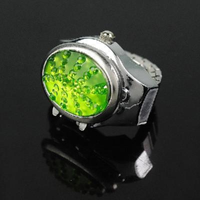 Stainless Steel Silvery Ring Watch with Oval-shaped Gemstone Cover