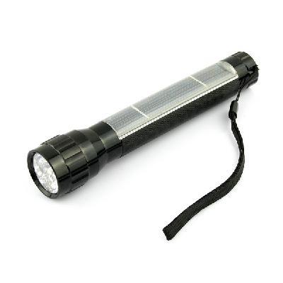 ` Rechargeable solar power 7 LED flashlight with strap design.