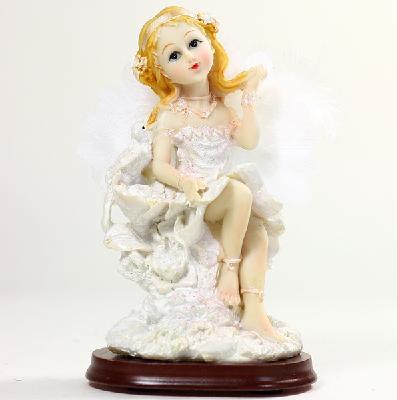 White angel sculpture, romantic night light, fine, elegant and beautiful. White symbolizes purity, pure angel wings is refined by a real animal feathers from sculpture angel surrounded by petals, pigeons placed on its skirt , a symbol of peace and tranquility.