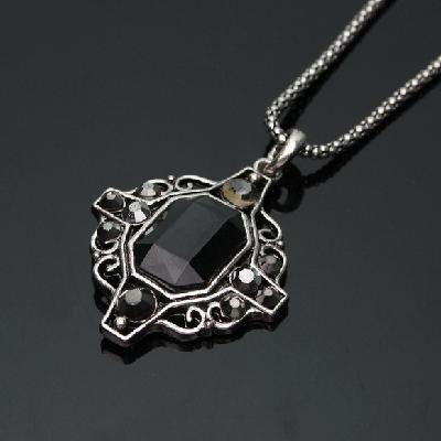 Black Opal Cymophane Diamond Ornate Lady Fashion Charm Necklace