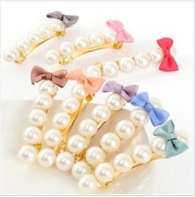 Korean Style Girl's Imitation Pearl Bowknot/ Butterfly Tie Hairpin