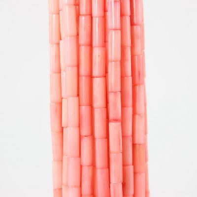 8x4 mm Pink Coral Gemstone Tube Shape Loose Beads 15.8 '