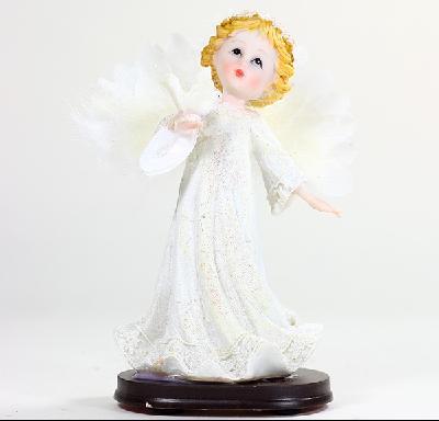 White angel sculpture, romantic night light, fine, elegant and beautiful. White symbolizes purity, pure angel wings is refined by a real animal feathers from sculpture angel surrounded by petals, pigeons placed on his hands, a symbol of peace and tranquility.