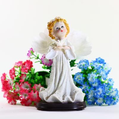 There is a dove standing on the hands of the angel, meaning peace, tranquility and good luck.