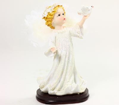 There is a dove standing on the hands of the angel, meaning peace, tranquility and good luck.