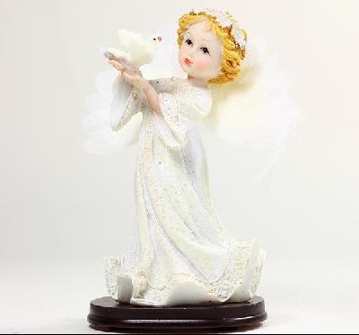 There is a dove standing on the hands of the angel, meaning peace, tranquility and good luck.