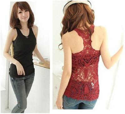 Women Crochet Lace Back Tank Top Sleeveless T-shirt Vest Cami Hollow-out Pierced
