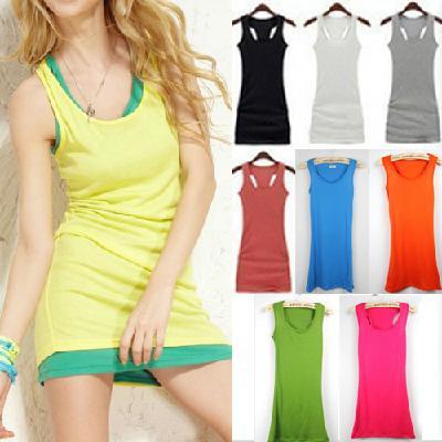 NEW Candy Colors Women's Casual Solid vest dress vest tops long T shirt Dress