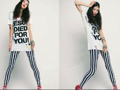Womens Lady Art Sexy Black & White Strip Print Leggings Tights Pants Fashion