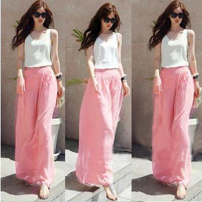2013 Stylish Women's Long GAUCHO Trousers Dockers Wide leg Loose Chiffon Gauze Pants