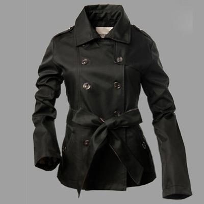 Characteristic long sleeve double-breasted windbreaker jacket coat for women