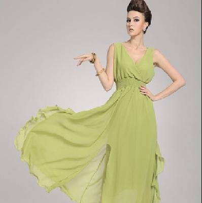 Women Plain V Neck Chiffon Chic Ball Gown Party Evening Long Ball Skirt Dress