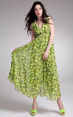 Characteristic Summer Wear V-Open Nipped-Waist Longuette Dress