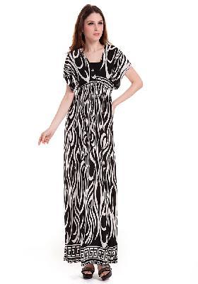 Characteristic Summer Wear Double V-Open Nipped-Waist Zebra-stripe Longuette Dress