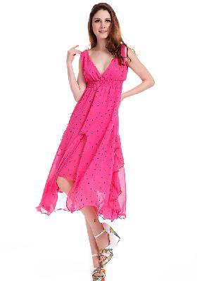 Characteristic Summer Wear V-Open Nipped-Waist Longuette Dress