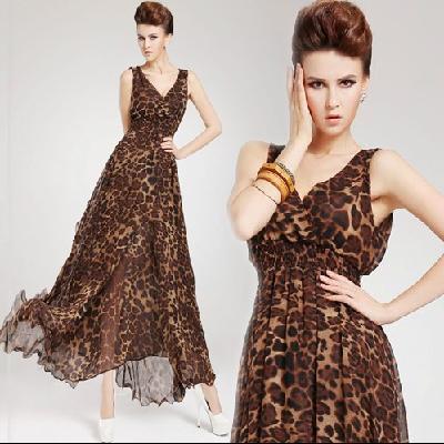 Hot Sexy Women Vogue Vintage Leopard Party Evening Ball Gown Chiffon Long Dress