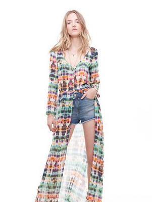 Fan Bingbing same paragraph retro explosion models in Europe and America TRF tie-dye dress chiffon dress long-sleeved cardigan