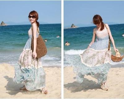 New Elegant Lady Woman's Sexy Chiffon Floral Sleeveless Beach Skirt Dress