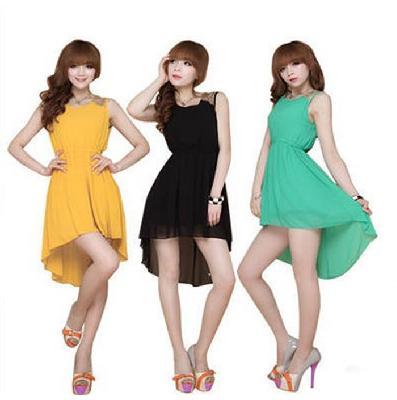 This is chiffon fabric, drape, polyester lining, thickness moderate, soft and comfortable, waist version, round neck, sleeveless vest style skirt, sequined shoulders, waist elastic design, skirt irregular design, long and short in front. great design sense .