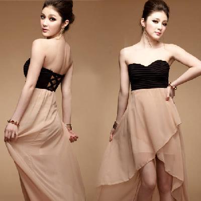 Fashion Women's Sexy Slim Strapless Chiffon Asymmetric Backless Long Dress
