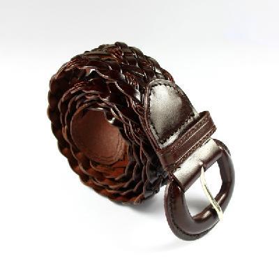 New Lady's Woven Leather Pin Buckle Waist Belt Brown